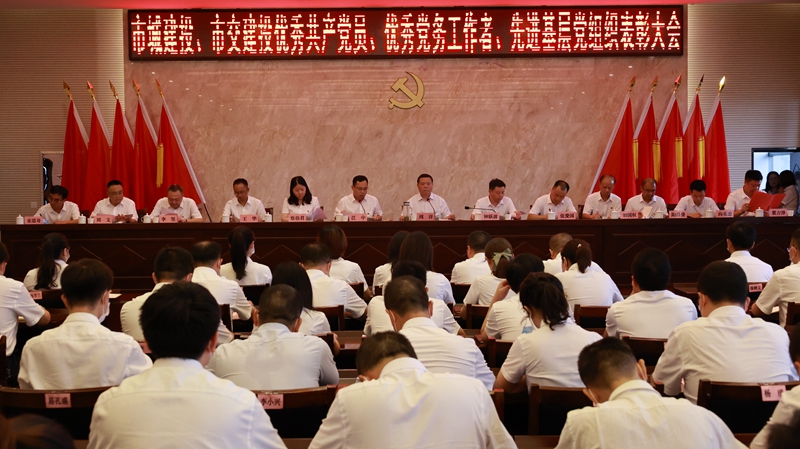 6月29日下午,在即將迎來中國共產黨百年華誕之際,懷化市城市建設投資有限公司、懷化交通建設投資有限公司在智慧大廈聯合召開慶祝建黨100周年暨“七一”表彰大會。市城建投公司、市交建投公司黨委書記、董事長周詳主持會議,市城建投、市交建投全體黨員(含預備黨員)、入黨發展對象、入黨積極分子、非黨員中層干部參加會議。