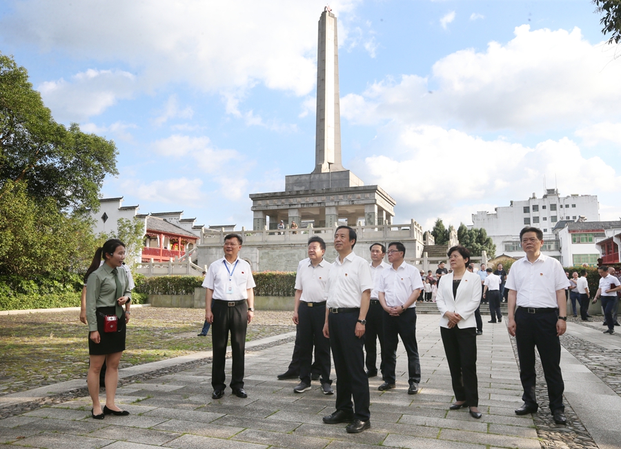 來到寨前鎮,許達哲一行到紅六軍團西征誓師地,瞻仰了誓師紀念廣場等。許達哲指出,紅六軍團突圍西征,為中央紅軍長征起到了偵察、探路的先遣隊作用。我們要充分發揚這種探索開拓精神,甘當偉大事業的“馬前卒”、爭做開拓進取的“急先鋒”。