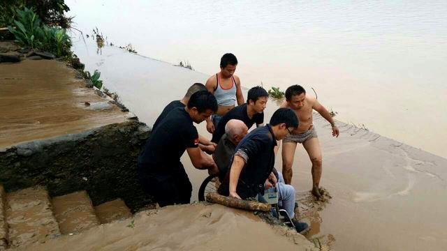 救援民警將寧鄉鋪村被困的癱瘓老人楊大爺安全轉移